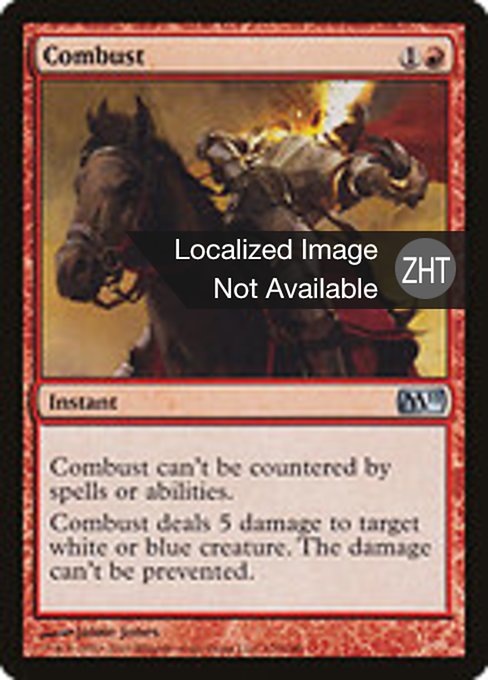 ![]() Variations— Parts— | 燒燃燒燃不能被咒語或異能反擊。 燒燃對由目標白色或藍色生物造成5點傷害。 此傷害不能被防止。