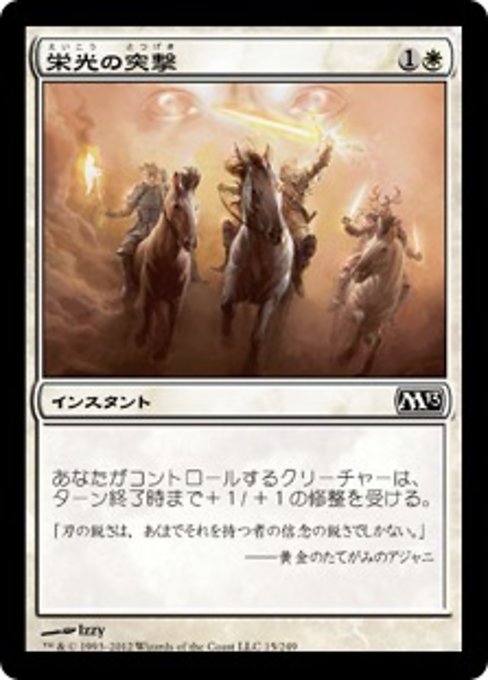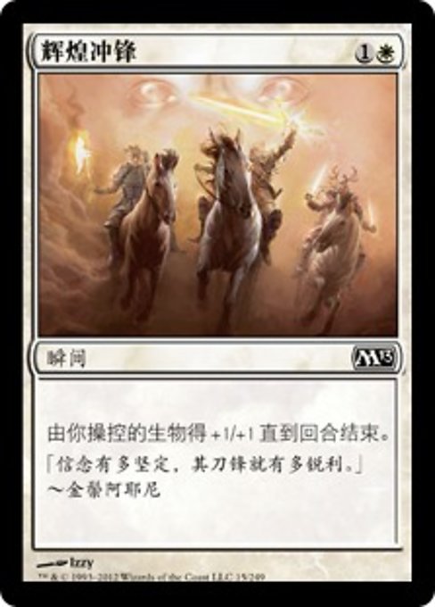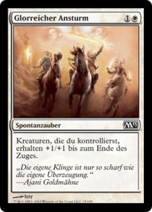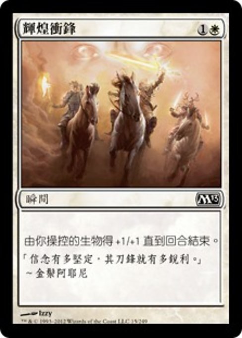 ![]() Variations— Parts— | Carga gloriosaLas criaturas que controlas obtienen +1/+1 hasta el final del turno.