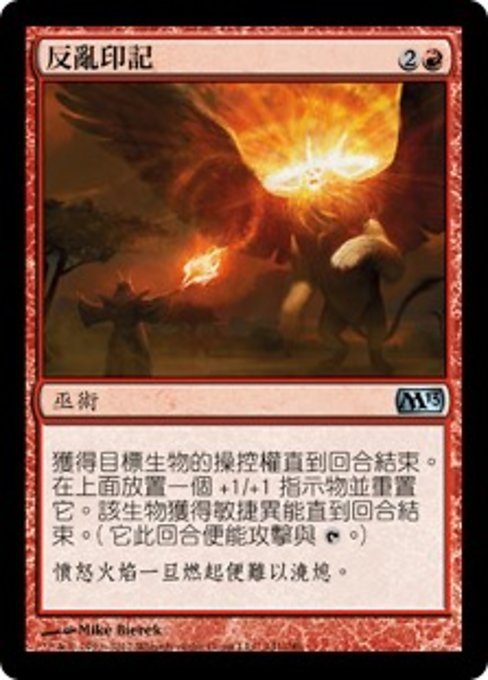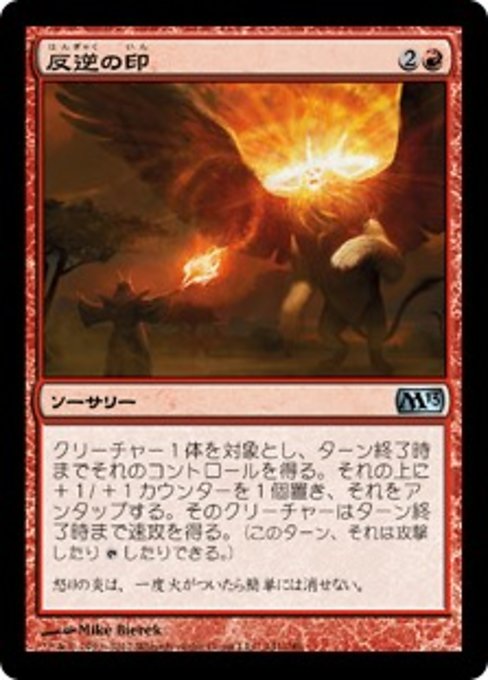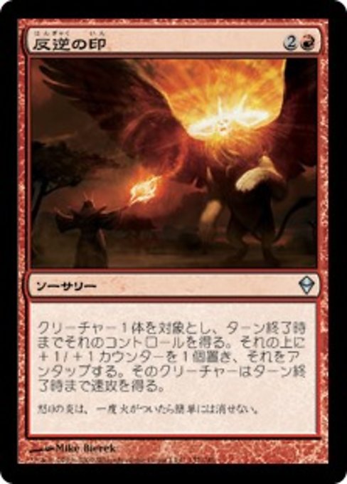 ![]() Variations— Parts— | 反逆の印クリーチャー1体を対象とし、ターン終了時までそれのコントロールを得る。それの上に+1/+1カウンターを1個置き、それをアンタップする。そのクリーチャーはターン終了時まで速攻を得る。(このターン、それは攻撃したり