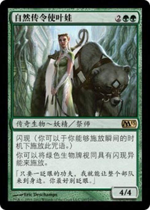 |  Variations— Parts— | 自然传令使叶娃4 / 4 闪现(你可以于你能够施放瞬间的时机下施放此咒语。) 你可以将绿色生物牌视同具有闪现异能来施放。
