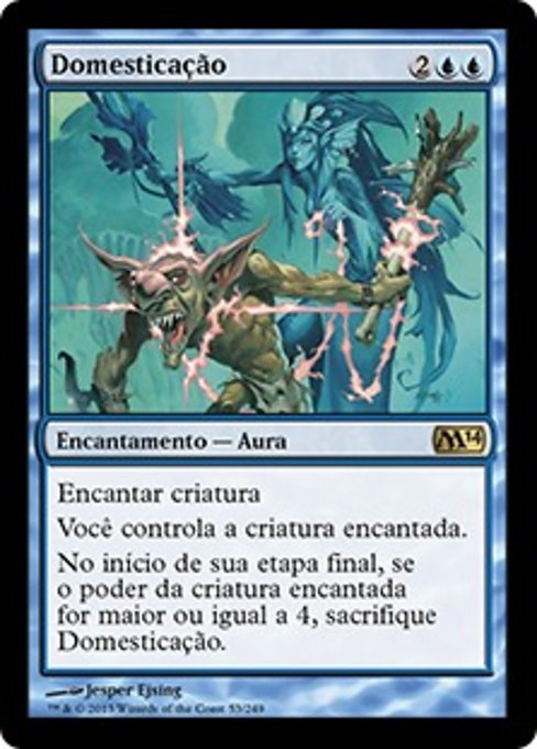 LegalitiesLegal Duel Penny Predh Legacy Modern Pioneer Vintage Commander Oathbreaker Not Legal Brawl Future Pauper Alchemy Historic Standard Timeless Gladiator Oldschool Premodern Standardbrawl Paupercommander RulingsDomestication's triggered ability has an "intervening 'if' clause." That means (1) the ability triggers only if the enchanted creature's power is 4 or greater as your end step begins, and (2) the ability does nothing if the enchanted creature's power is 3 or less by the time it resolves.