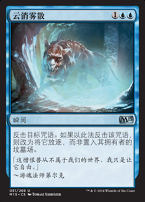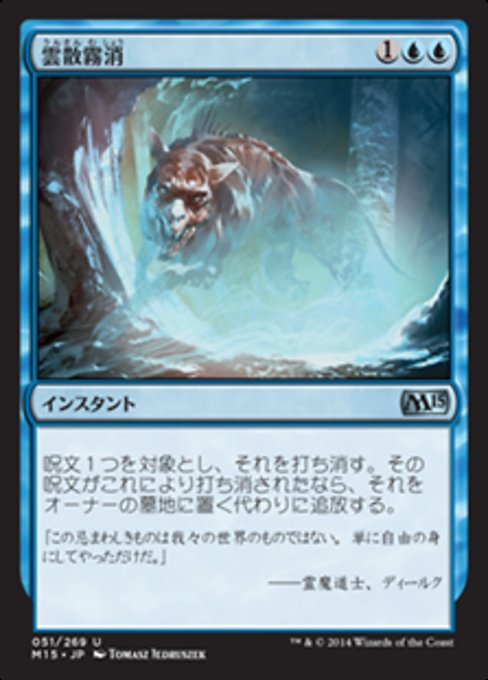 ![]() Variations— Parts— | 雲散霧消呪文1つを対象とし、それを打ち消す。その呪文がこれにより打ち消されたなら、それをオーナーの墓地に置く代わりに追放する。
