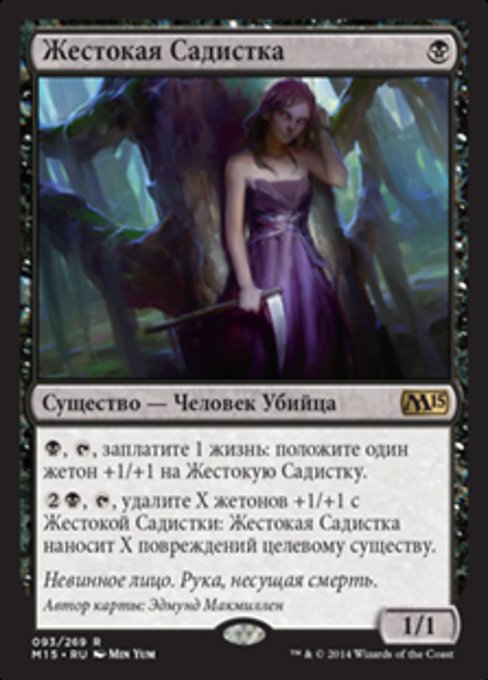 LegalitiesLegal Duel Penny Legacy Modern Pioneer Vintage Commander Oathbreaker Not Legal Brawl Predh Future Pauper Alchemy Historic Standard Timeless Gladiator Oldschool Premodern Standardbrawl Paupercommander RulingsYou can remove any +1/+1 counters from Cruel Sadist to activate its second ability, not just those put on Cruel Sadist by its first ability.