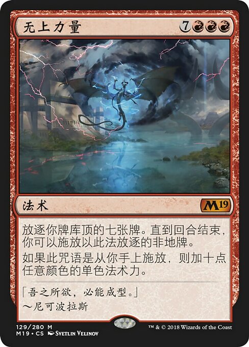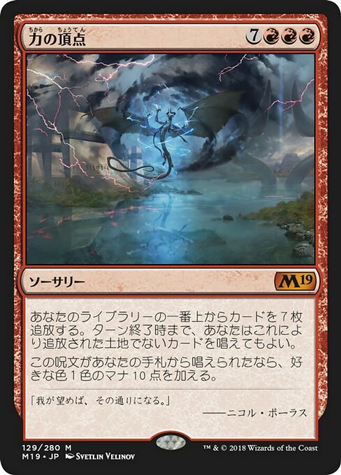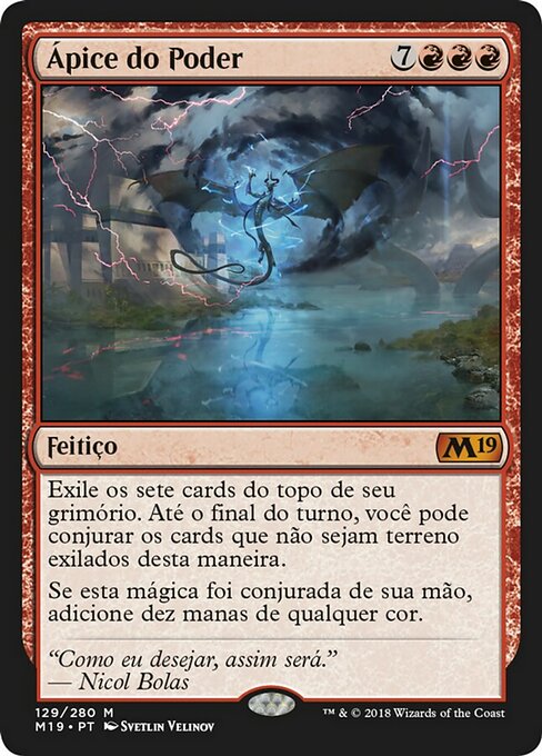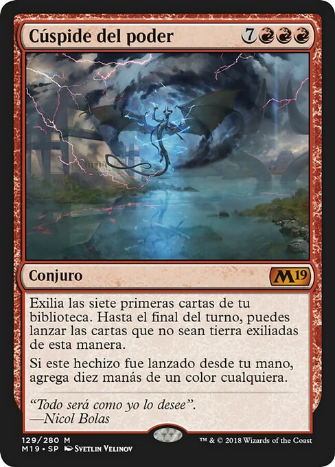 ![]() Variations— Parts— | Apex of PowerExile the top seven cards of your library. Until end of turn, you may cast spells from among them. If this spell was cast from your hand, add ten mana of any one color.
