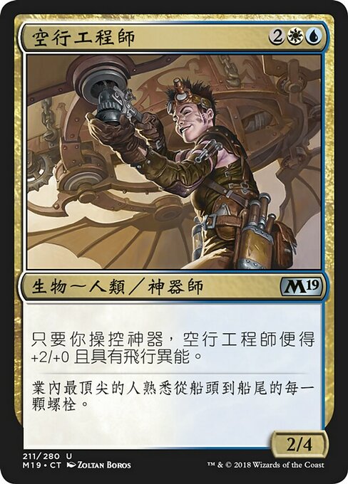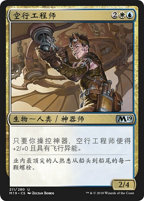 |  Variations— Parts— | Aerial Engineer2 / 4 As long as you control an artifact, this creature gets +2/+0 and has flying.