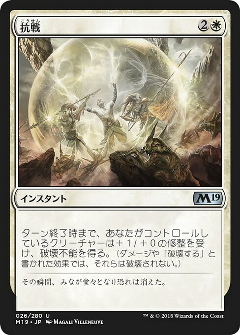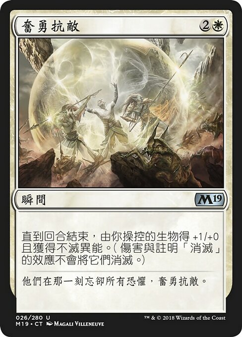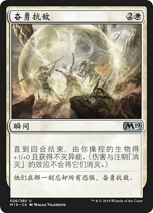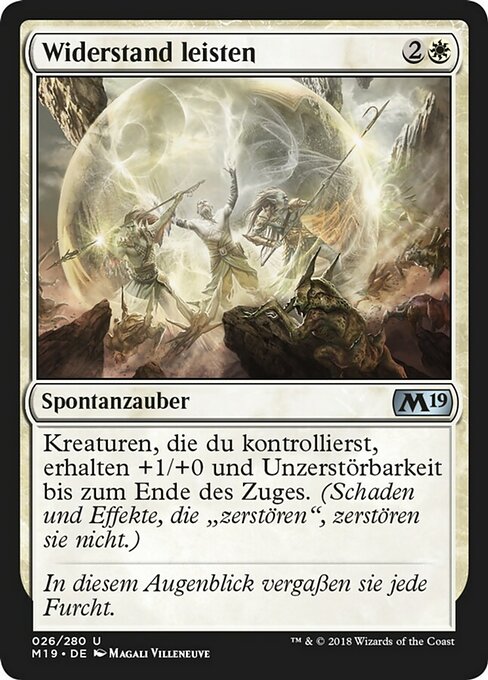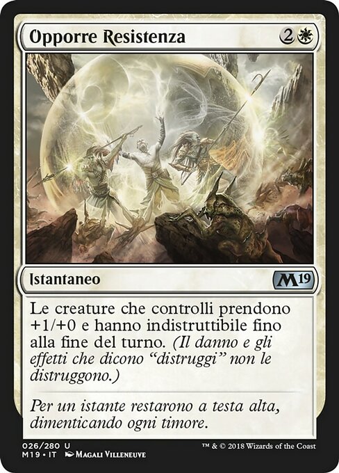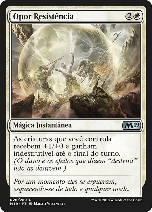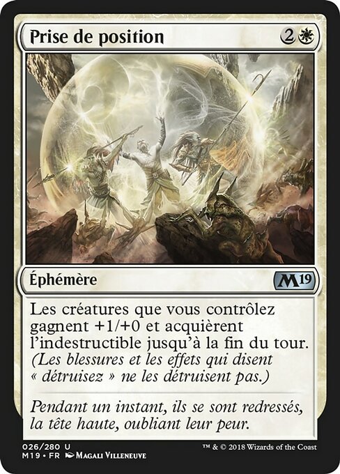 ![]() Variations— Parts— | Make a StandCreatures you control get +1/+0 and gain indestructible until end of turn. (Damage and effects that say "destroy" don't destroy them.)