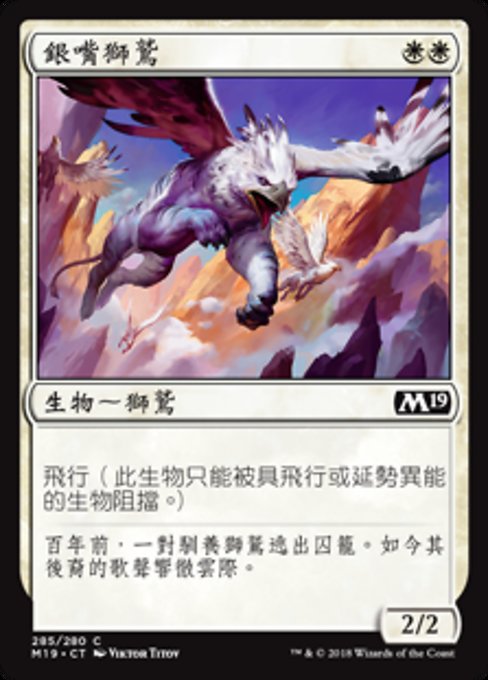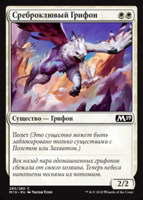 ![]() Variations— Parts— | Silverbeak Griffin2 / 2 Flying (This creature can't be blocked except by creatures with flying or reach.)