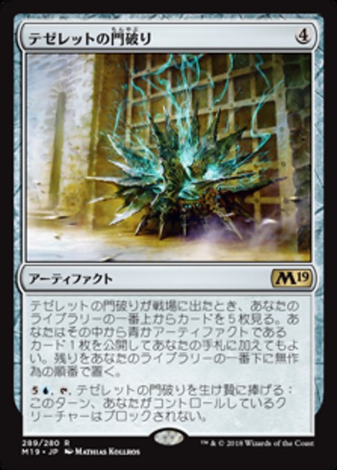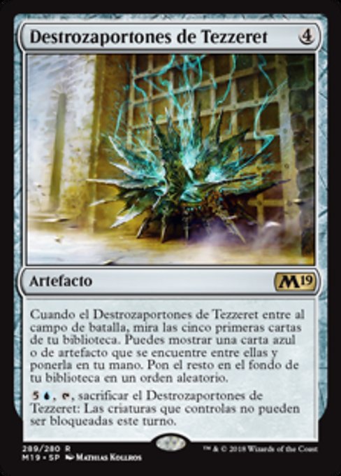 ![]() Variations— Parts— | Tezzeret's GatebreakerWhen this artifact enters, look at the top five cards of your library. You may reveal a blue or artifact card from among them and put it into your hand. Put the rest on the bottom of your library in a random order.