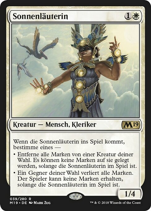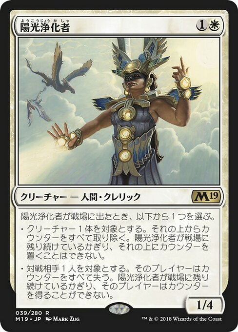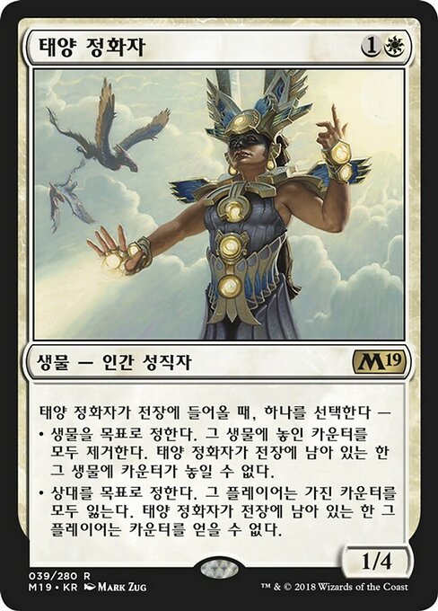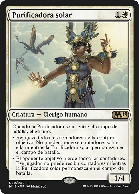 |  Variations— Parts— | Suncleanser1 / 4 When this creature enters, choose one — • Remove all counters from target creature. It can't have counters put on it for as long as this creature remains on the battlefield. • Target opponent loses all counters. That player can't get counters for as long as this creature remains on the battlefield.