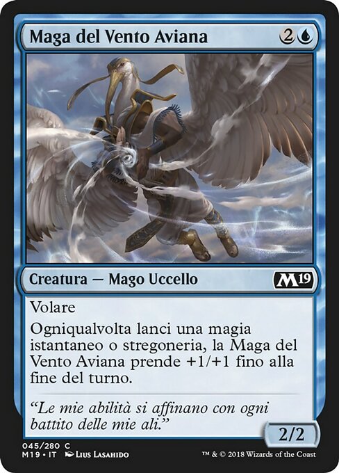 ![]() Variations— Parts— | Aven Wind Mage2 / 2 Flying Whenever you cast an instant or sorcery spell, this creature gets +1/+1 until end of turn.