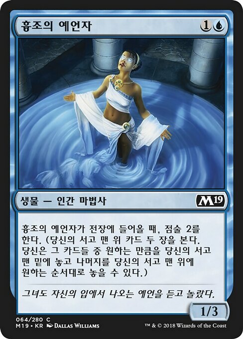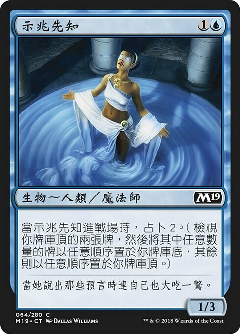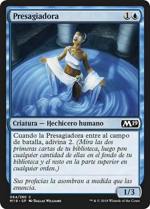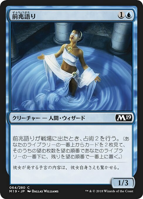 ![]() Variations— Parts— | Omenspeaker1 / 3 When this creature enters, scry 2. (Look at the top two cards of your library, then put any number of them on the bottom and the rest on top in any order.)