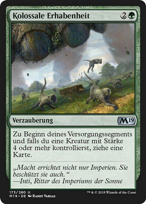 |  Variations— Parts— | Majesté colossaleAu début de votre entretien, si vous contrôlez une créature de force supérieure ou égale à 4, piochez une carte.