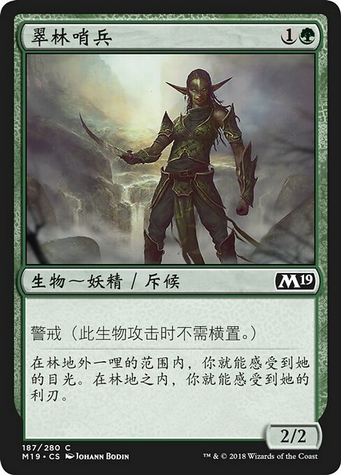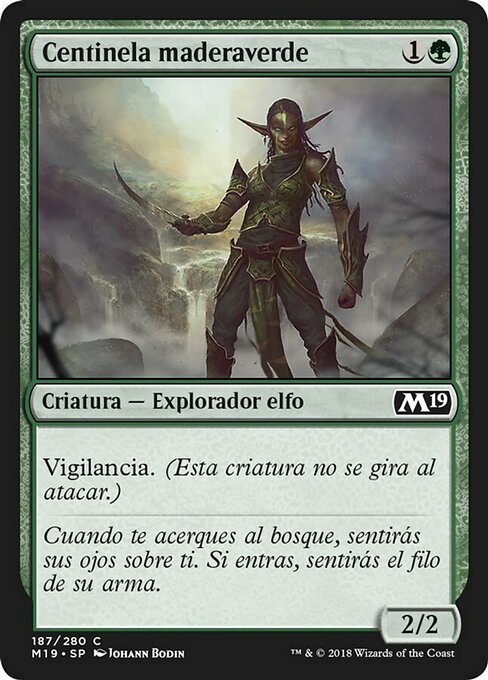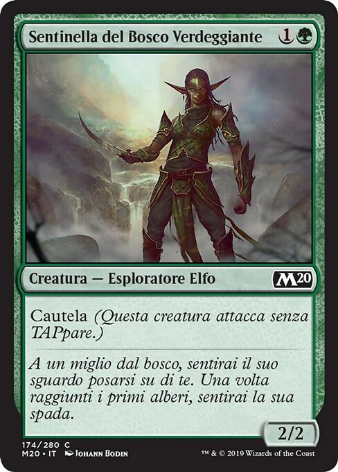 ![]() Variations— Parts— | Sentinella del Bosco Verdeggiante2 / 2 Cautela (Questa creatura attacca senza TAPpare.)
