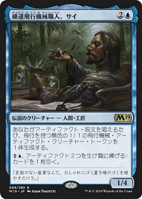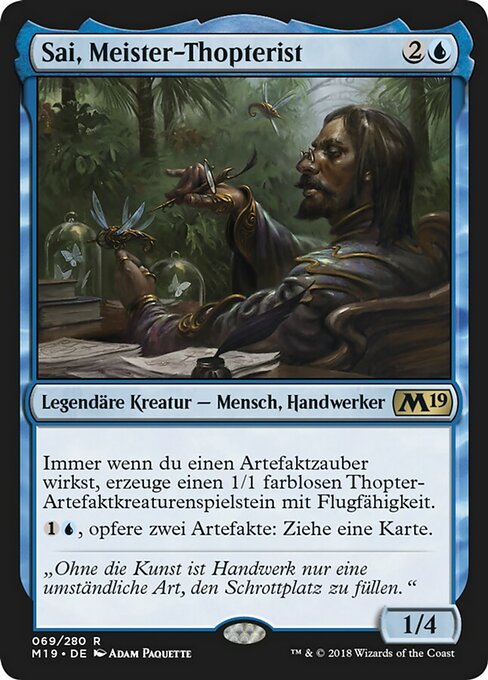 |  Variations— Parts— | Sayi, Maestro Totterista1 / 4 Ogniqualvolta lanci una magia artefatto, crea una pedina creatura artefatto Tottero 1/1 incolore con volare.
