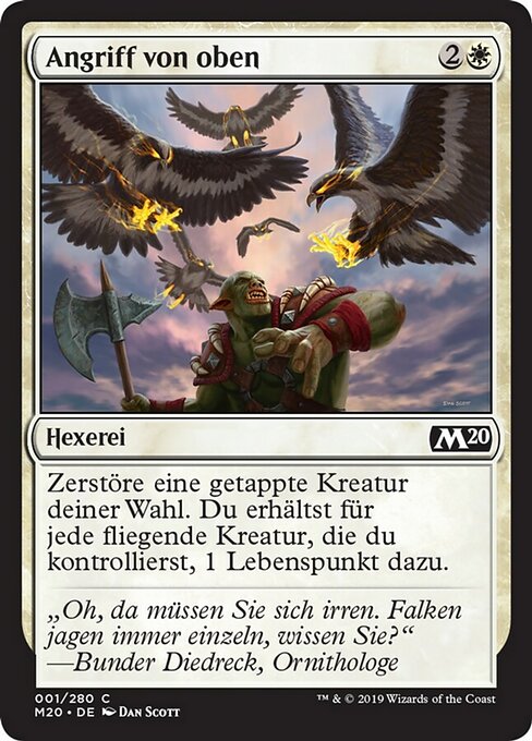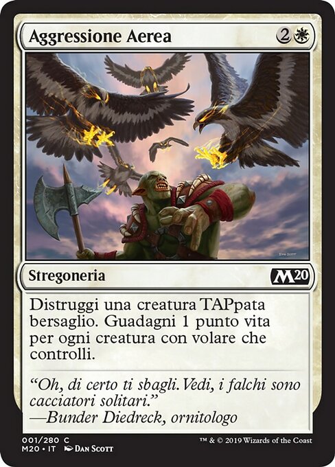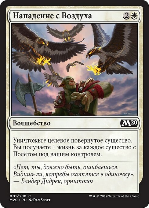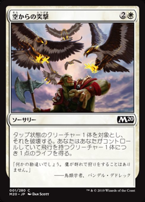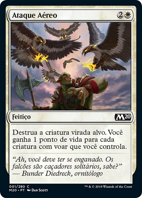 ![]() Variations— Parts— | Aerial AssaultDestroy target tapped creature. You gain 1 life for each creature you control with flying.