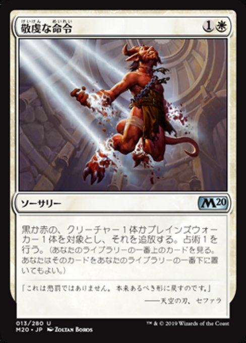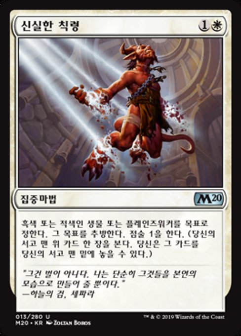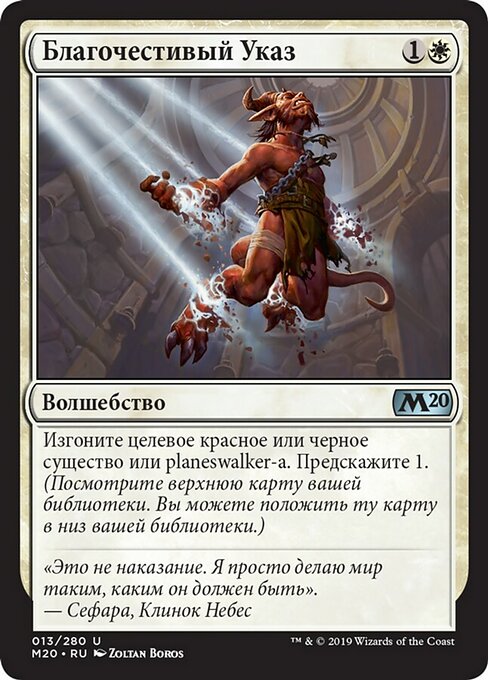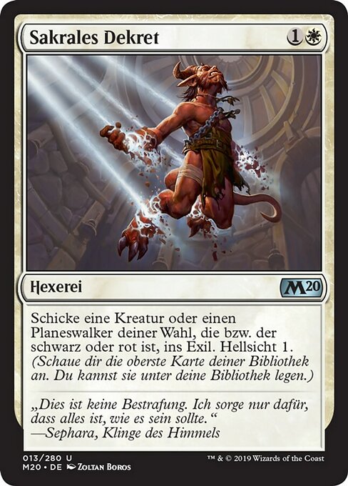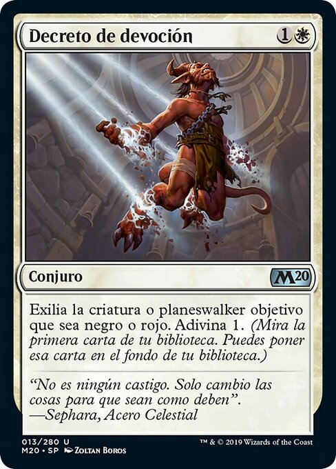 ![]() Variations— Parts— | Devout DecreeExile target creature or planeswalker that's black or red. Scry 1. (Look at the top card of your library. You may put that card on the bottom.)