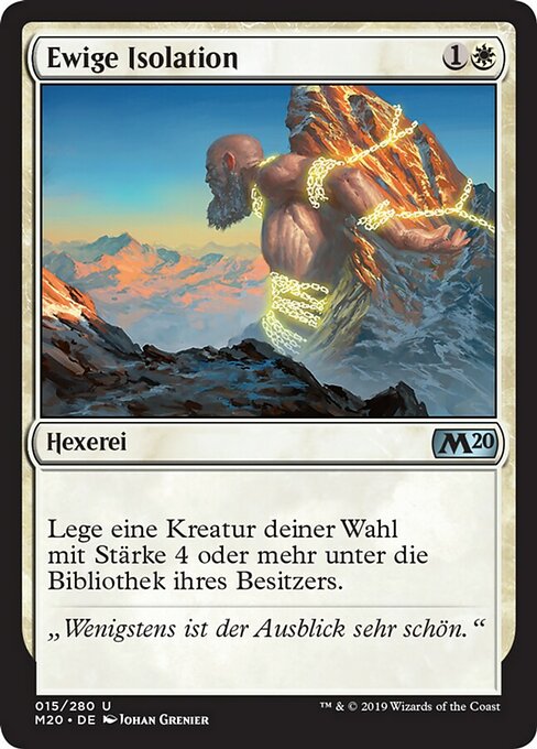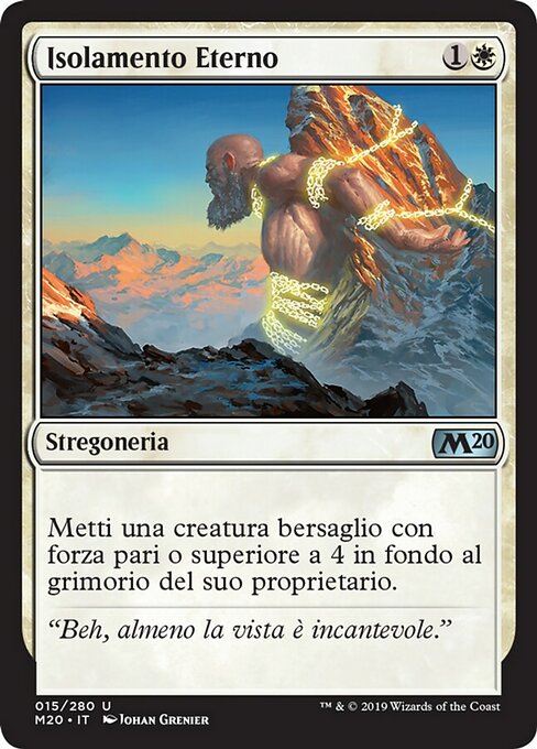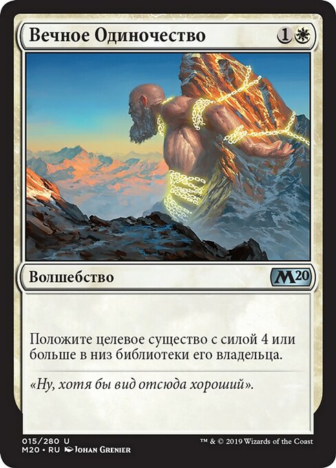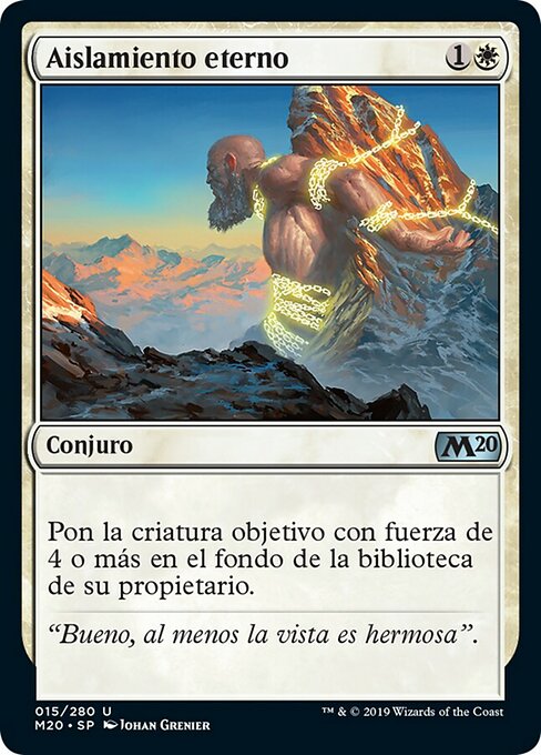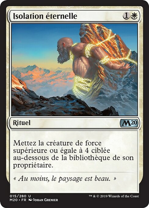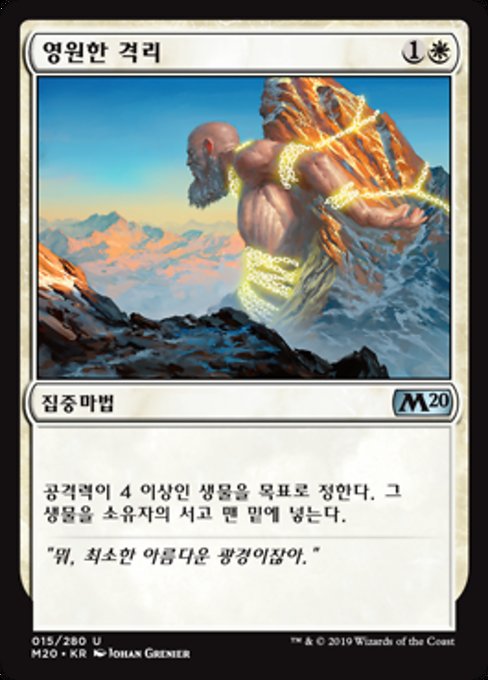 ![]() Variations— Parts— | Eternal IsolationPut target creature with power 4 or greater on the bottom of its owner's library.
