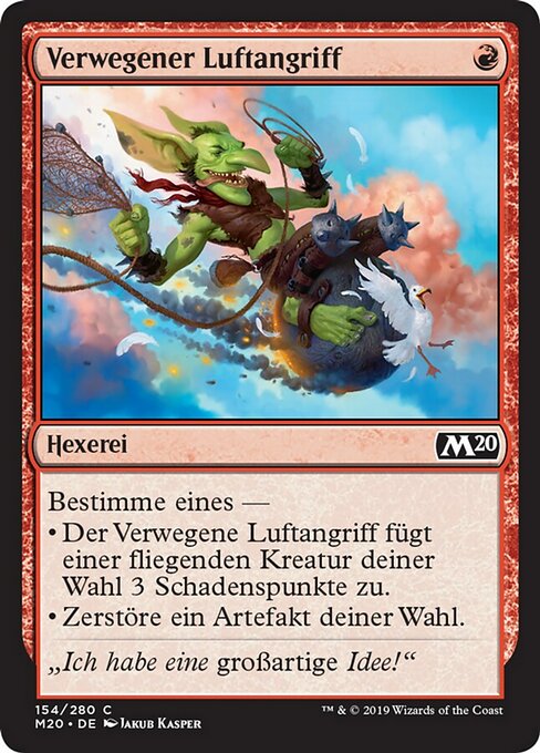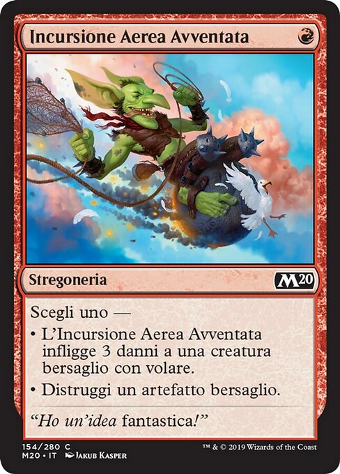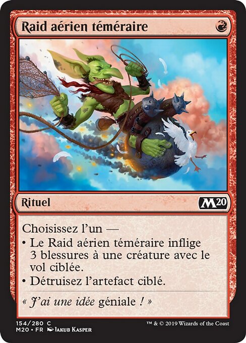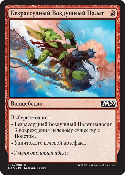 |  Variations— Parts— | Reckless Air StrikeChoose one — • Reckless Air Strike deals 3 damage to target creature with flying. • Destroy target artifact.