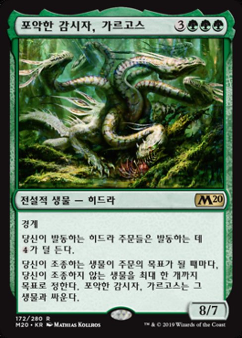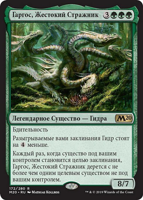 ![]() Variations— Parts— | Gargos, Vicious Watcher8 / 7 Vigilance Hydra spells you cast cost Whenever a creature you control becomes the target of a spell, Gargos fights up to one target creature you don't control.