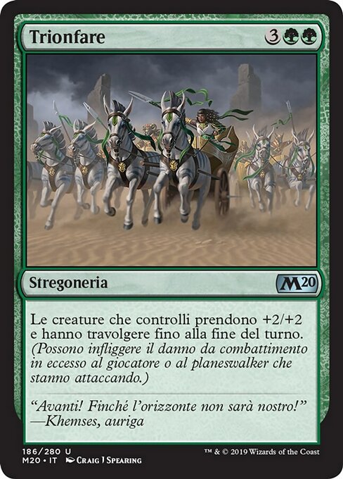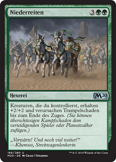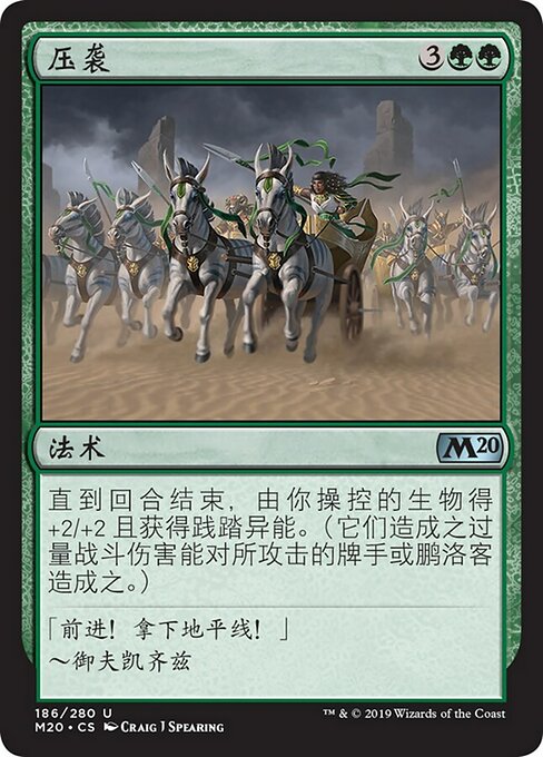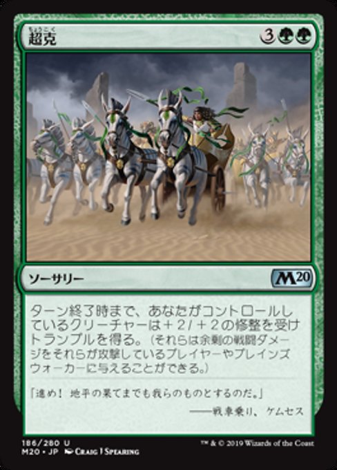 |  Variations— Parts— | OvercomeCreatures you control get +2/+2 and gain trample until end of turn. (Each of those creatures can deal excess combat damage to the player or planeswalker it's attacking.)