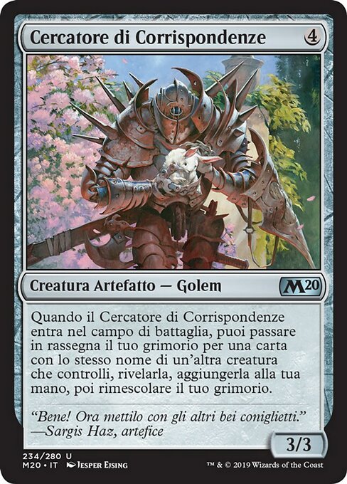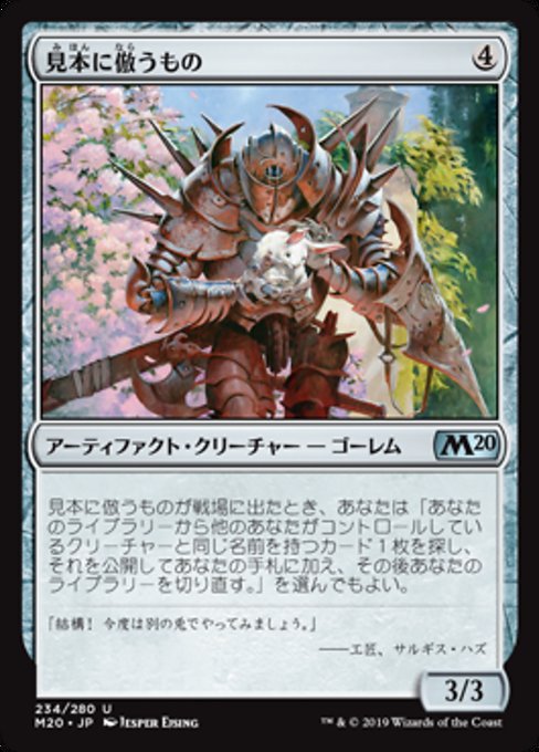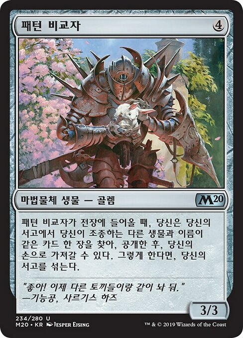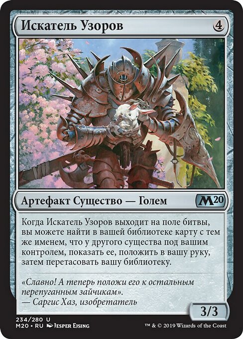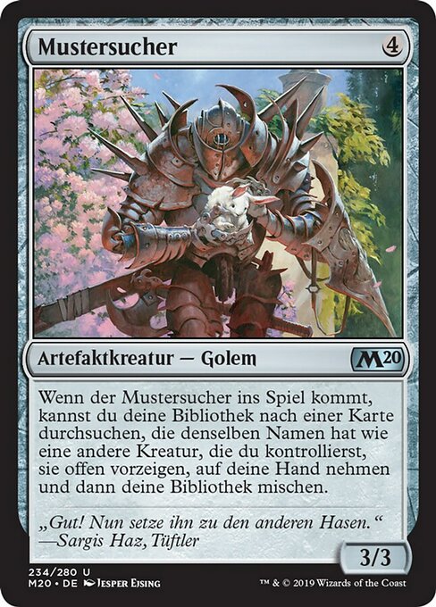 ![]() Variations— Parts— | Pattern Matcher3 / 3 When this creature enters, you may search your library for a card with the same name as another creature you control, reveal it, put it into your hand, then shuffle.