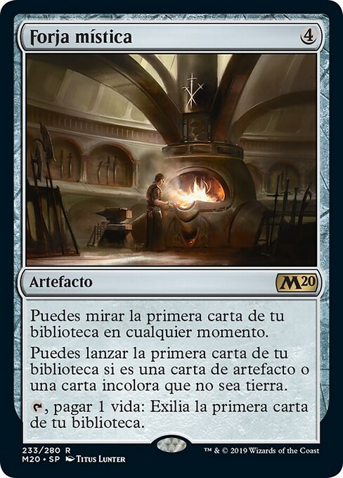 ![]() Variations— Parts— | Forja místicaPuedes mirar la primera carta de tu biblioteca en cualquier momento. Puedes lanzar la primera carta de tu biblioteca si es una carta de artefacto o una carta incolora que no sea tierra.