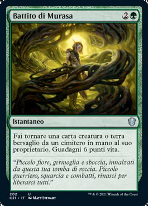 |  Variations— Parts— | Battito di MurasaFai tornare una carta creatura o terra bersaglio da un cimitero in mano al suo proprietario. Guadagni 6 punti vita.