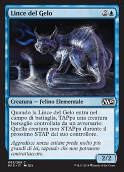 ![]() Variations— Parts— | Lince del Gelo2 / 2 Quando la Lince del Gelo entra nel campo di battaglia, TAPpa una creatura bersaglio controllata da un avversario. Quella creatura non STAPpa durante il prossimo STAP del suo controllore.