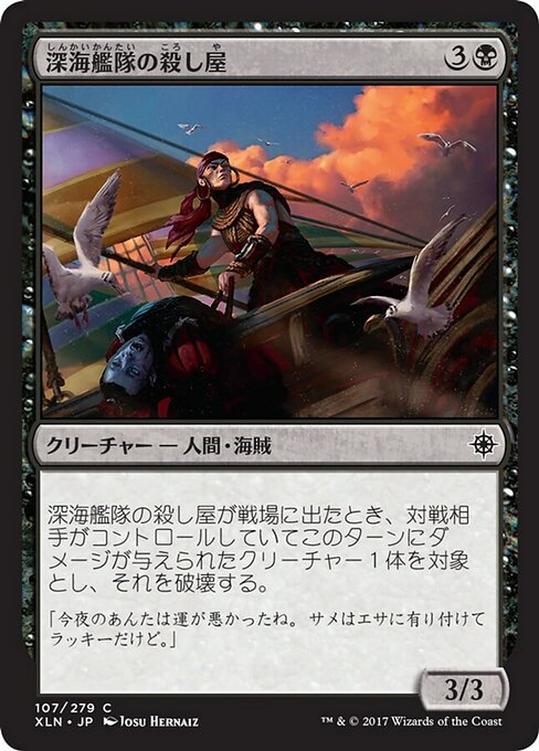|  Variations— Parts— | 深海艦隊の殺し屋3 / 3 深海艦隊の殺し屋が戦場に出たとき、対戦相手がコントロールしていてこのターンにダメージが与えられたクリーチャー1体を対象とし、それを破壊する。
