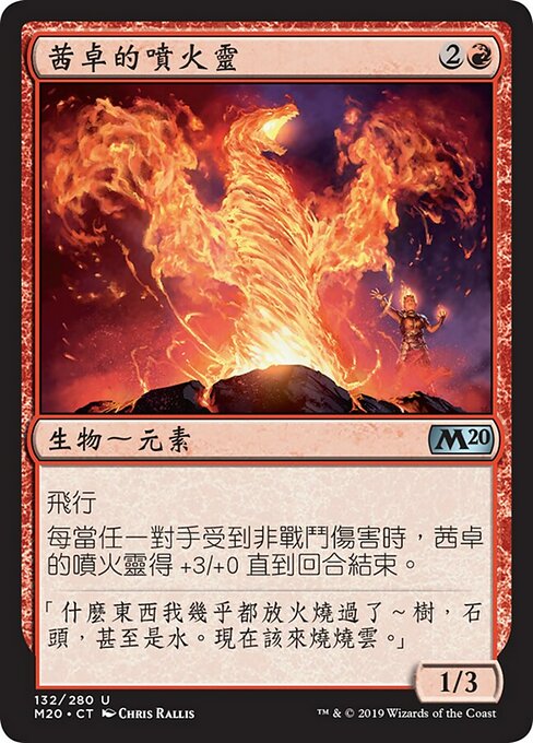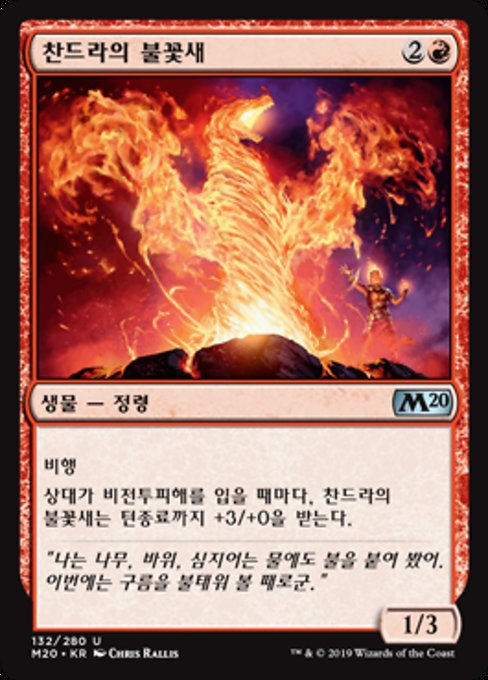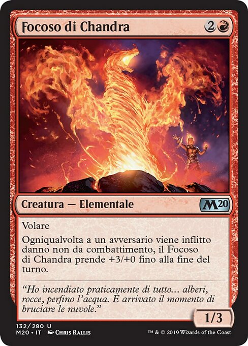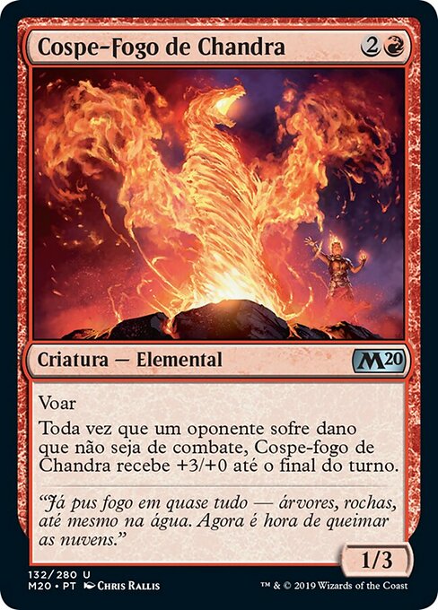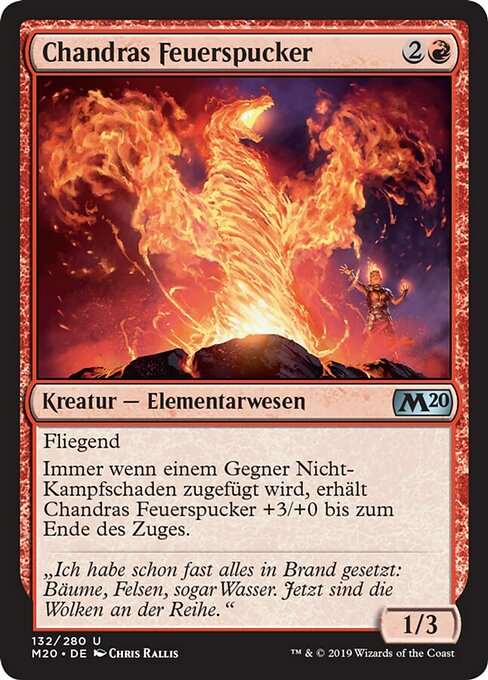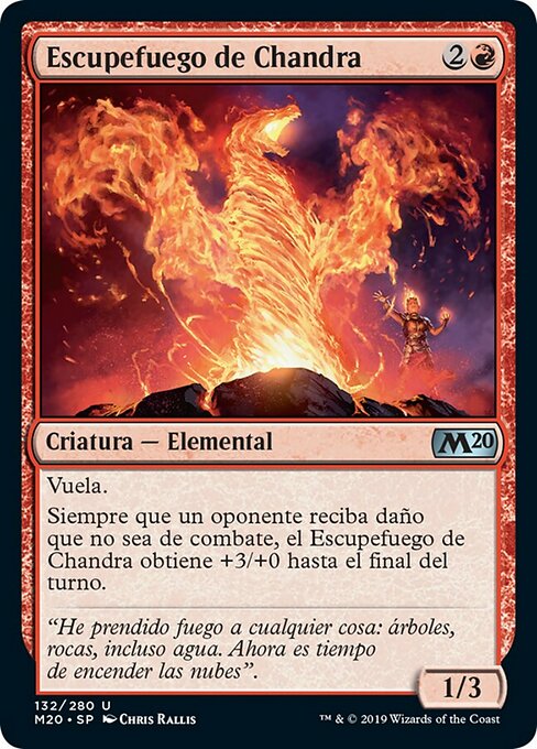![]() Variations— Parts— | チャンドラの吐火1 / 3 飛行 対戦相手1人に戦闘ダメージでないダメージが与えられるたび、ターン終了時まで、チャンドラの吐火は+3/+0の修整を受ける。