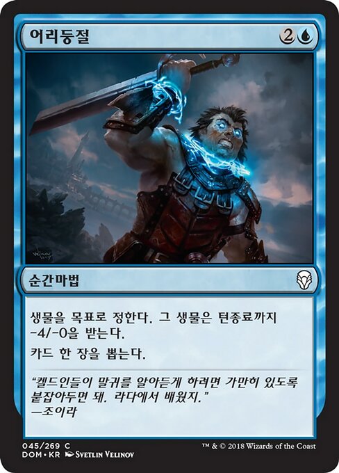 |  Variations— Parts— | 어리둥절생물을 목표로 정한다. 그 생물은 턴종료까지 -4/-0을 받는다. 카드 한 장을 뽑는다.