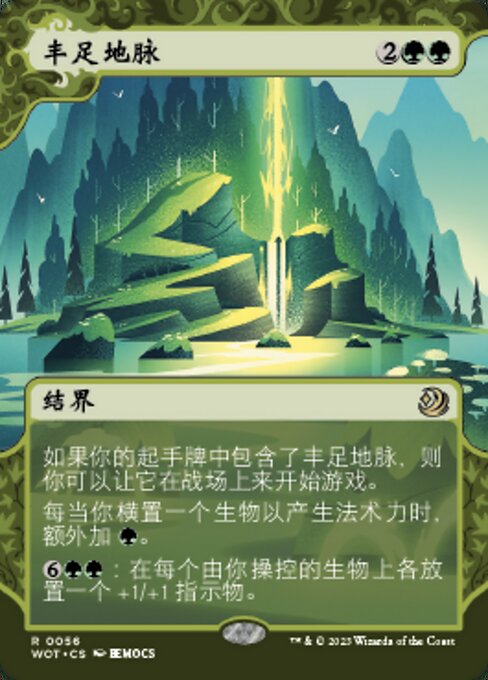![]() Variations— Parts— | 丰足地脉如果你的起手牌中包含了丰足地脉,则你可以让它在战场上来开始游戏。 每当你横置一个生物以产生法术力时,额外加
