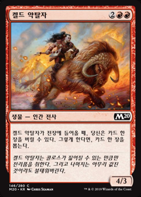 |  Variations— Parts— | 凱爾頓突擊兵4 / 3 當凱爾頓突擊兵進戰場時,你可以棄一張牌。若你如此作,則抽一張牌。