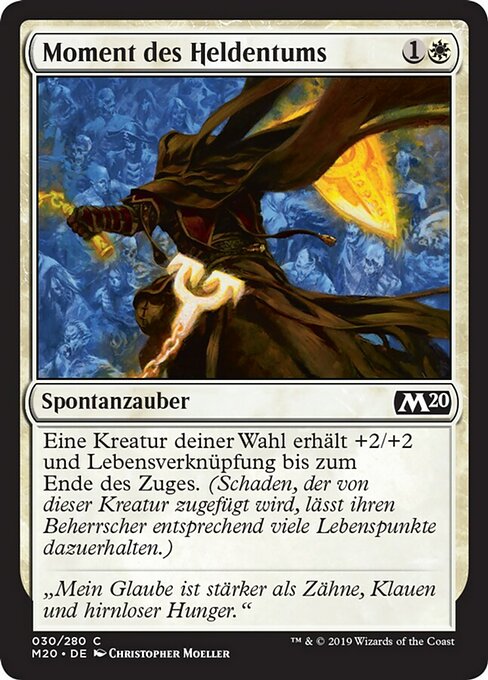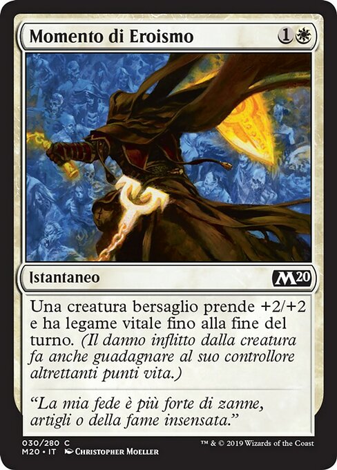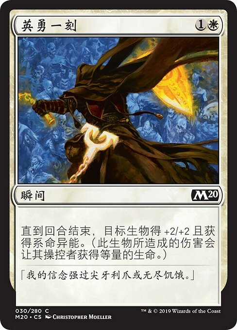 |  Variations— Parts— | 英勇一刻直到回合結束,目標生物得+2/+2且獲得繫命異能。(此生物所造成的傷害會讓其操控者獲得等量的生命。)