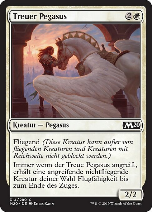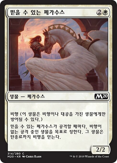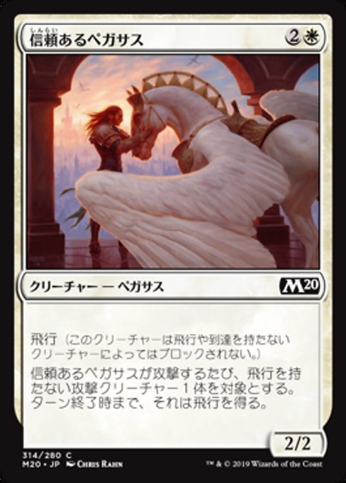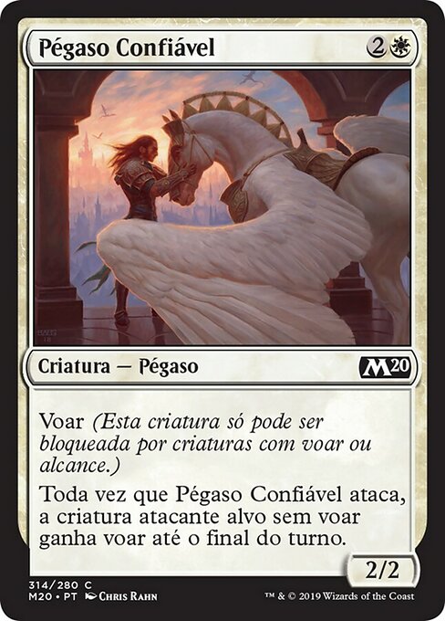 ![]() Variations— Parts— | 可靠飛馬2 / 2 飛行(此生物只能被具飛行或延勢異能的生物阻擋。) 每當可靠飛馬攻擊時,目標進行攻擊且不具飛行異能的生物獲得飛行異能直到回合結束。