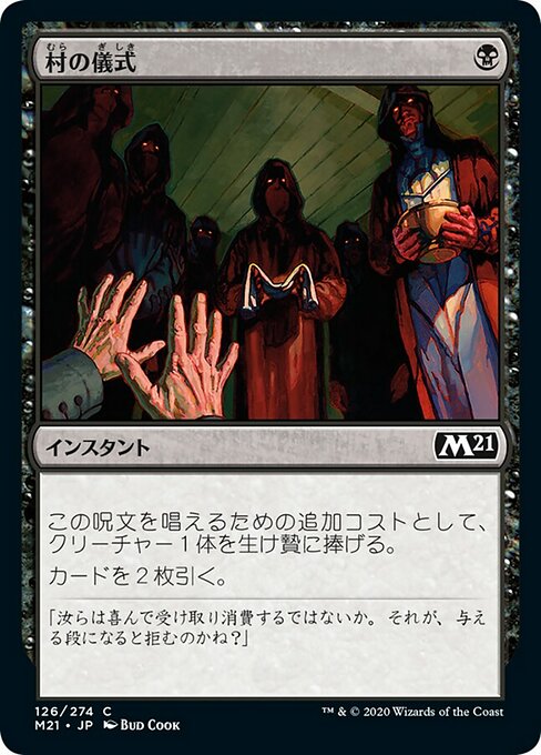 ![]() Variations— Parts—  | Village RitesAs an additional cost to cast this spell, sacrifice a creature. Draw two cards.