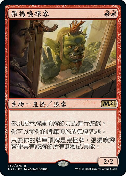 ![]() Variations : 1Parts— | Conspicuous Snoop2 / 2 Play with the top card of your library revealed. You may cast Goblin spells from the top of your library. As long as the top card of your library is a Goblin card, this creature has all activated abilities of that card.