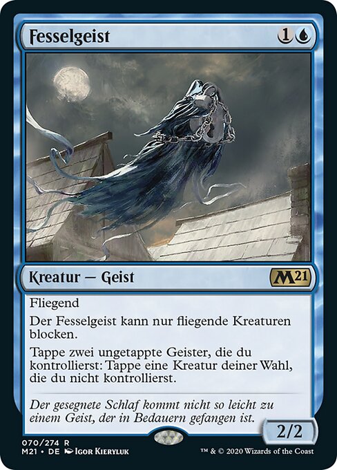![]() Variations : 1Parts— | Shacklegeist2 / 2 Flying This creature can block only creatures with flying. Tap two untapped Spirits you control: Tap target creature you don't control.