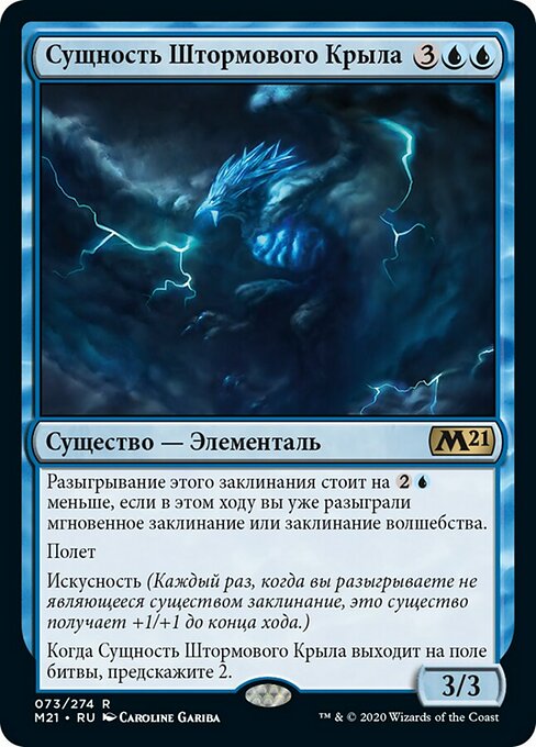 |  Variations : 1Parts— | Stormwing Entity3 / 3 This spell costs  Flying Prowess (Whenever you cast a noncreature spell, this creature gets +1/+1 until end of turn.) When this creature enters, scry 2.