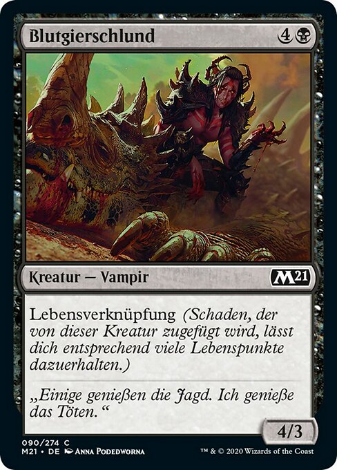 ![]() Variations— Parts— | Blood Glutton4 / 3 Lifelink (Damage dealt by this creature also causes you to gain that much life.)