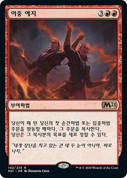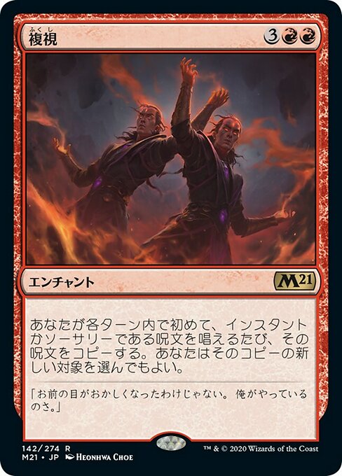 ![]() Variations— Parts— | Doppia VisioneOgniqualvolta lanci la tua prima magia istantaneo o stregoneria in ogni turno, copia quella magia. Puoi scegliere nuovi bersagli per la copia.
