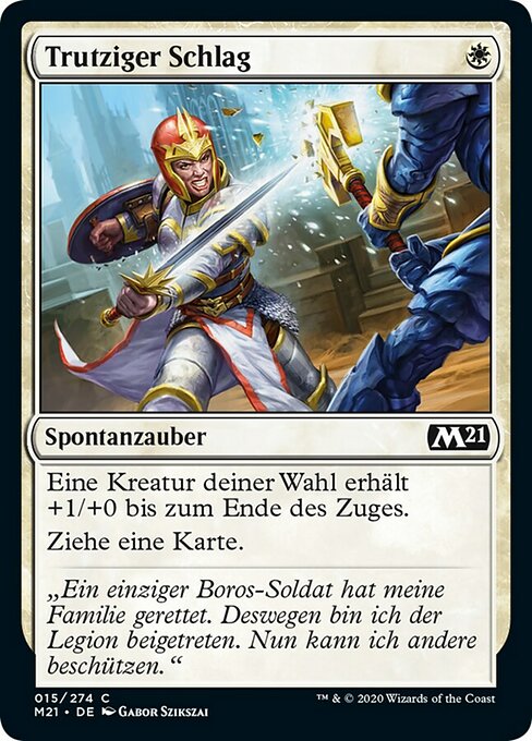 ![]() Variations— Parts— | Colpo SprezzanteUna creatura bersaglio prende +1/+0 fino alla fine del turno. Pesca una carta.