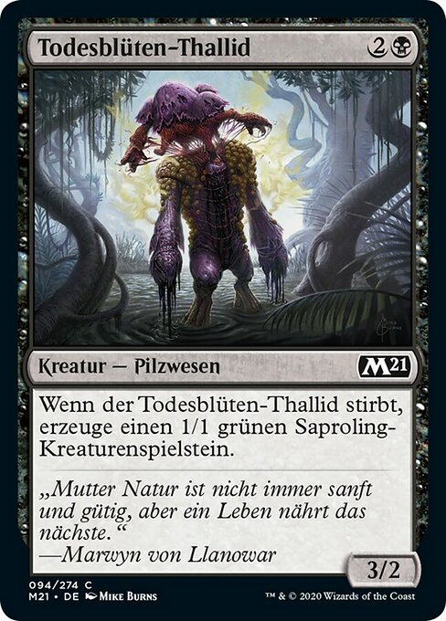 ![]() Variations— Parts— | Thallid Germoglio di Morte3 / 2 Quando il Thallid Germoglio di Morte muore, crea una pedina creatura Saprolingio 1/1 verde.
