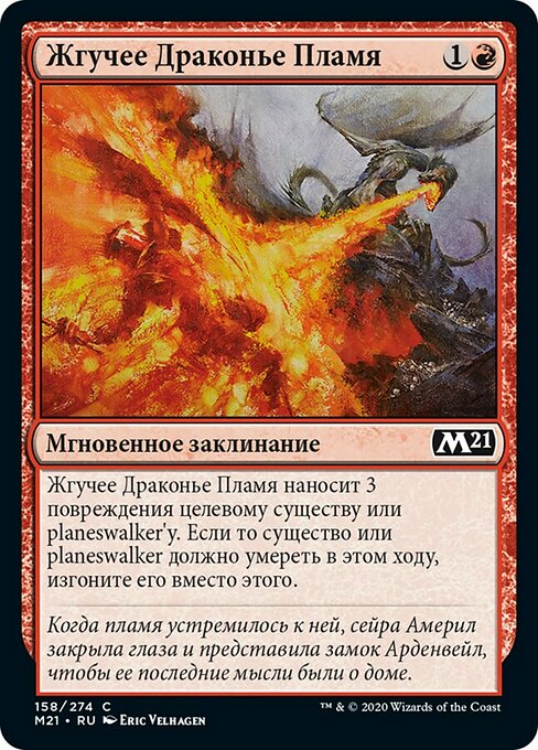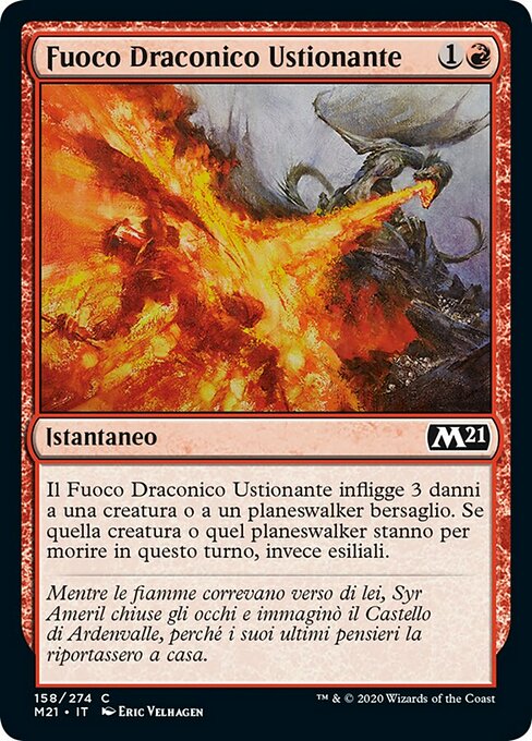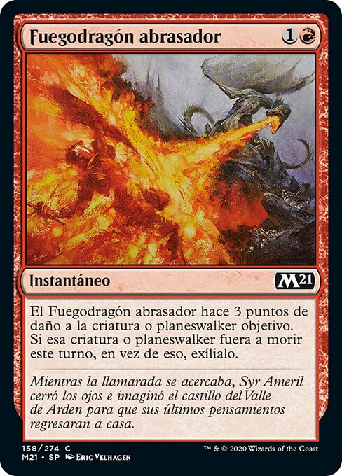 LegalitiesLegal Duel Brawl Penny Future Legacy Modern Pauper Alchemy Pioneer Vintage Historic Standard Timeless Commander Gladiator Oathbreaker Standardbrawl Paupercommander Not Legal Predh Oldschool Premodern RulingsScorching Dragonfire's replacement effect will exile the target creature or planeswalker if it would die this turn for any reason, not just due to lethal damage. It applies to the target creature or planeswalker even if Scorching Dragonfire deals no damage to it (most likely due to a prevention effect).