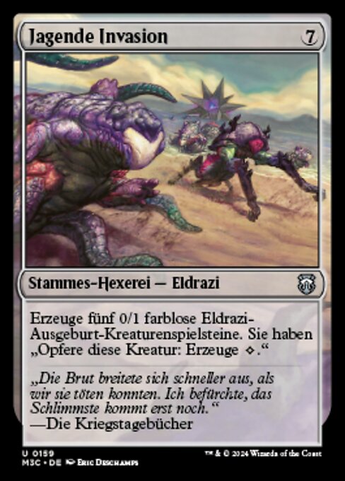 |  Variations— Parts— | Jagende InvasionErzeuge fünf 0/1 farblose Eldrazi-Ausgeburt-Kreaturenspielsteine. Sie haben „Opfere diese Kreatur: Erzeuge