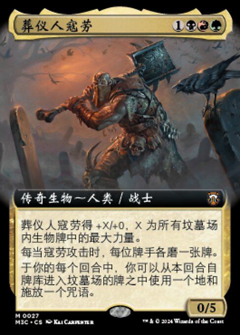 |  Variations : 4Parts— | Coram, the Undertaker0 / 5 Coram gets +X/+0, where X is the greatest power among creature cards in all graveyards. Whenever Coram attacks, each player mills a card. During each of your turns, you may play a land and cast a spell from among cards in graveyards that were put there from libraries this turn.