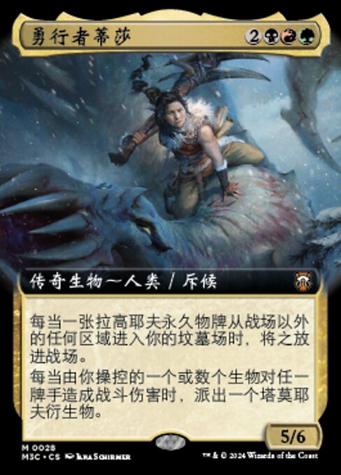 ![]() Variations : 6Parts : 2 | Disa the Restless5 / 6 Whenever a Lhurgoyf permanent card is put into your graveyard from anywhere other than the battlefield, put it onto the battlefield. Whenever one or more creatures you control deal combat damage to a player, create a Tarmogoyf token.