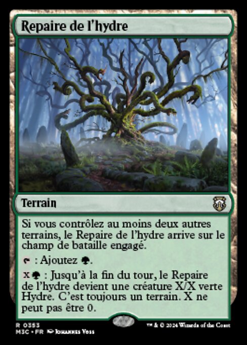 ![]() Variations— Parts— | Lair of the HydraIf you control two or more other lands, this land enters tapped.