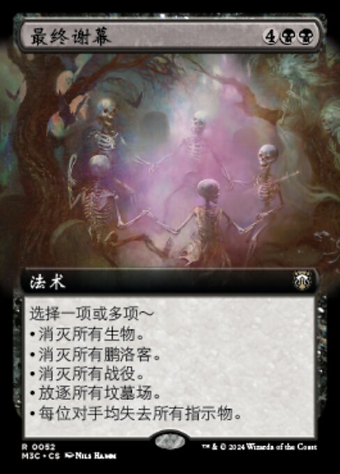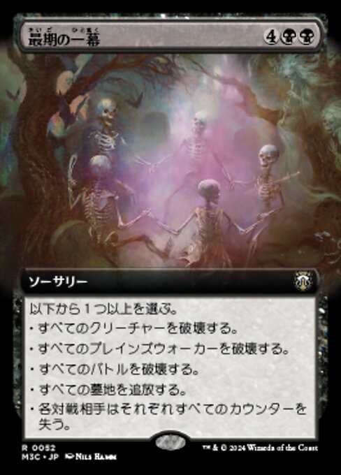 ![]() Variations : 1Parts— | Final ActChoose one or more — • Destroy all creatures. • Destroy all planeswalkers. • Destroy all battles. • Exile all graveyards. • Each opponent loses all counters.
