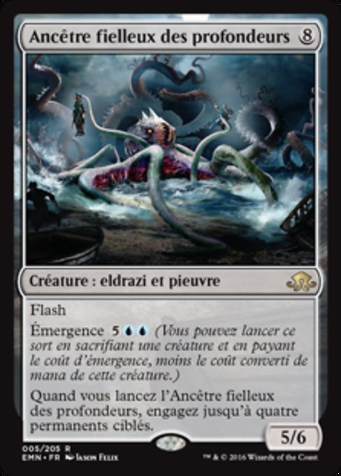 |  Variations— Parts— | Ancêtre fielleux des profondeurs5 / 6 Flash Émergence Quand vous lancez ce sort, engagez jusqu'à quatre permanents ciblés.